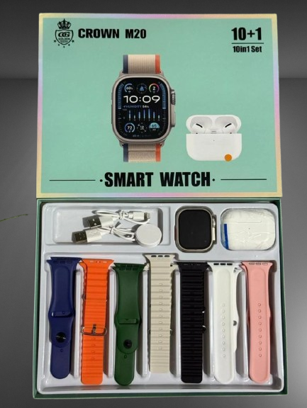 The Crown M20 Smart Watch is a versatile wearable designed to keep you connected and health‑aware on a budget. With full touchscreen display and Bluetooth calling support, you can make and receive calls straight from your wrist. It tracks heart rate, blood oxygen (SpO₂), sleep quality, and basic fitness — including steps and various sports modes (running, walking, cycling, etc.). The combo package often comes with wireless earbuds, offering added value for music and calls. Its sleek design, smartphone‑compatibility (Android and iOS), and smart notifications (calls, messages, social apps) make it a practical daily use smartwatch.